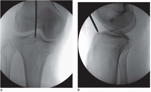 - Ideal: Centered just medial to the lateral tibial spine in the AP view, and at the anterior edge of the tibial plateau in the lateral view.